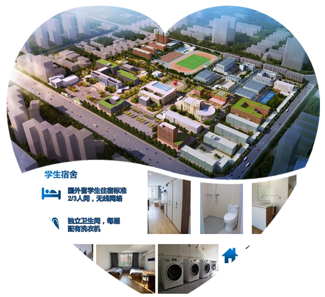 北京交通大學國際教育學院(唐山)位于唐山市中心城區的“黃金片區”,交通便利,周邊商業發達。校園總占地371畝,總建筑面積23.5萬平方米。學校硬件設施先進,教學條件優越,行政辦公樓、教學樓、逸夫圖書館、學生食堂以及環境舒適、條件一流的宿舍樓等基礎設施齊全,為學生創造了國際化的學習氛圍和優美的生活環境,學生可以與校內來華留學生一起學習交流,共同開展社團及文體活動,提升跨文化交際能力。