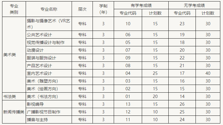 各專業(yè)招生計劃按照有學(xué)考成績考生和無學(xué)考成績考生分別編制、分別錄取,以最終公布的招生計劃為準(zhǔn)。具體如下: