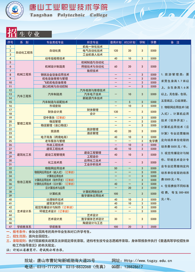 唐山工業(yè)職業(yè)技術(shù)學(xué)院2022年高招計劃